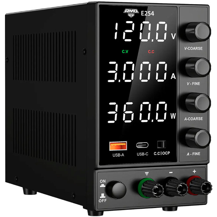 При работе с напряжениями выше 50 В соблюдение мер электробезопасности становится обязательным. Корпус источника питания AMO E254 должен быть надежно заземлен, а все соединительные кабели — иметь исправную изоляцию. Функция OCP мгновенно ограничивает ток при превышении заданного пользователем значения, предотвращая пробои, перегрев и повреждение оборудования. Визуальная индикация режимов CV/CC/OCP обеспечивает полный контроль над состоянием источника без дополнительных приборов.
