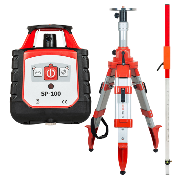 Комплект ротационный нивелир RGK SP-100 со штативом RGK SH-170 и рейкой RGK LR-2