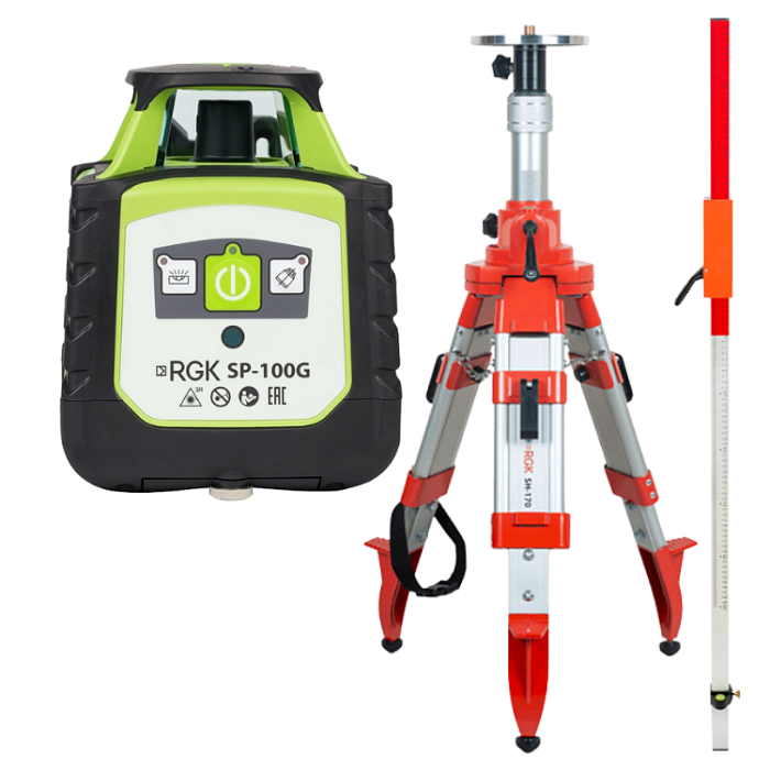 Купить комплект ротационный нивелир RGK SP-100G со штативом RGK SH-170 и рейкой RGK LR-2