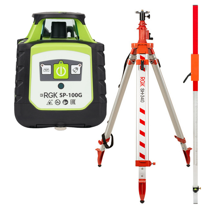 Комплект ротационный нивелир RGK SP-100G со штативом RGK SH-340 и рейкой RGK LR-2