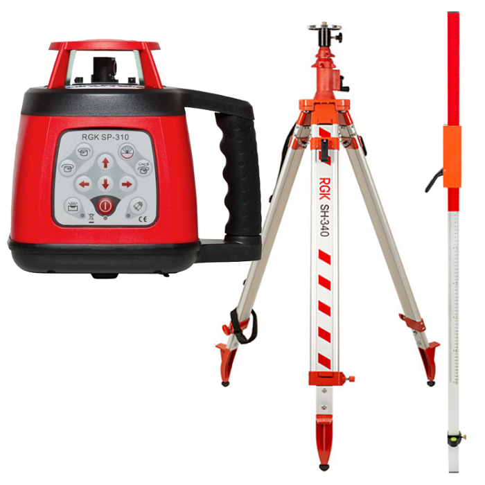 Комплект ротационный нивелир RGK SP-310 со штативом RGK SH-340 и рейкой RGK LR-2