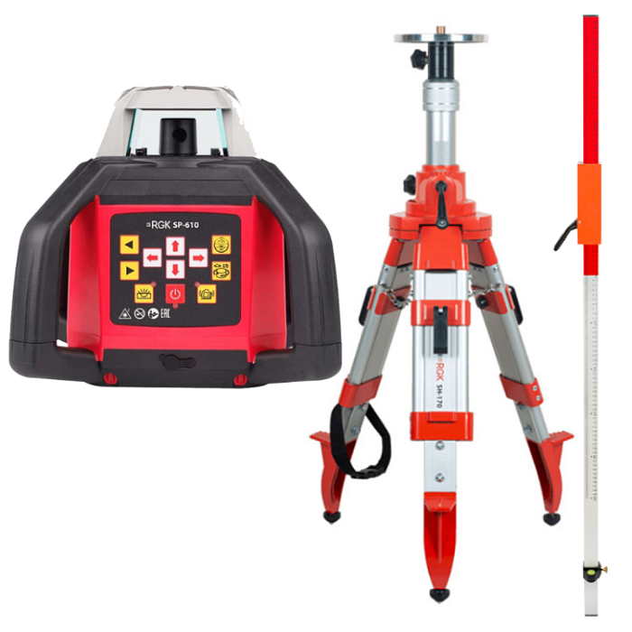 Комплект ротационный нивелир RGK SP-610 со штативом RGK SH-170 и рейкой RGK LR-2