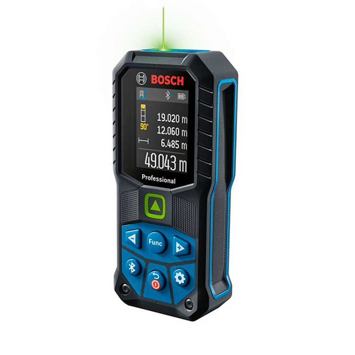 Дальномер BOSCH GLM 50-22 — это первый лазерный дальномер на рынке, оснащенный цветным и хорошо читаемым ЖК-дисплеем. Все измерения и выбранные функции или настройки отображаются очень четко, что делает работу с дальномером очень простой и интуитивно понятной.