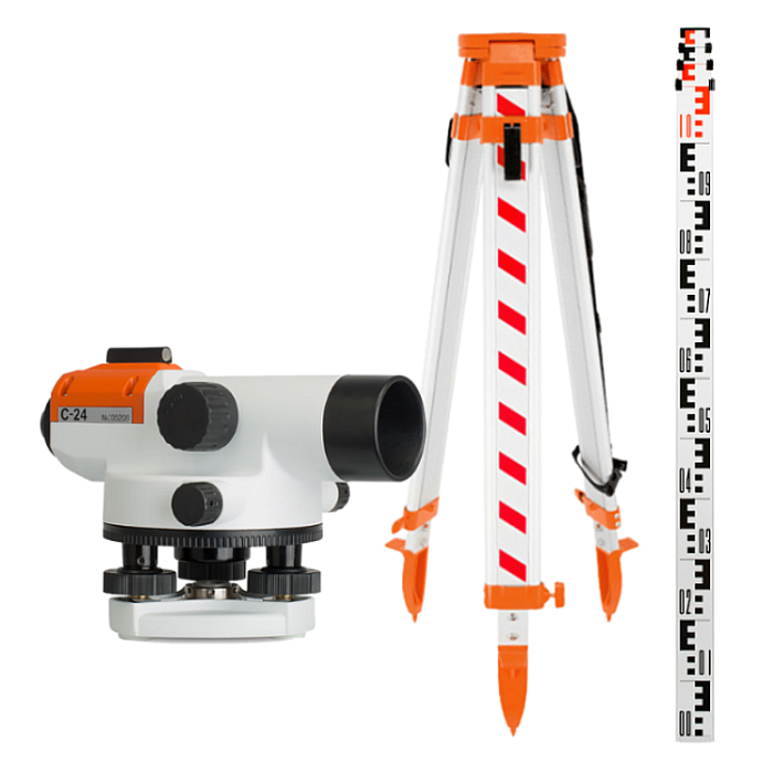 Преимущества использования оптического нивелира RGK C-24 в комплекте со штативом и рейкой