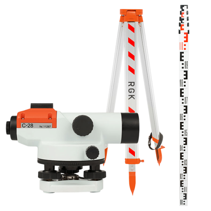 Преимущества использования оптического нивелира RGK C-28 в комплекте со штативом и рейкой