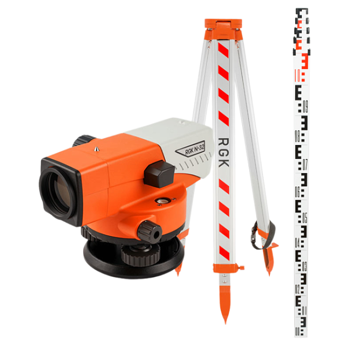 Комплект - оптический нивелир RGK N-32, рейка RGK TS-5 и штатив RGK S6-N