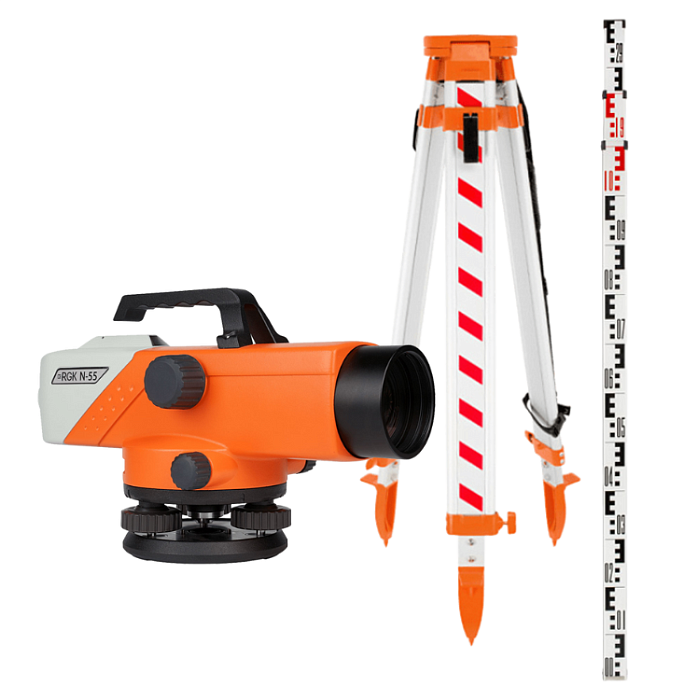 Комплект - оптический нивелир RGK N-55, рейка AMO S3 и штатив RGK S6-Z