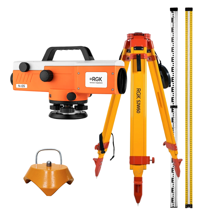 Купить оптический нивелир RGK N-05, рейки RGK INVAR 103 и штатив RGK SJW60